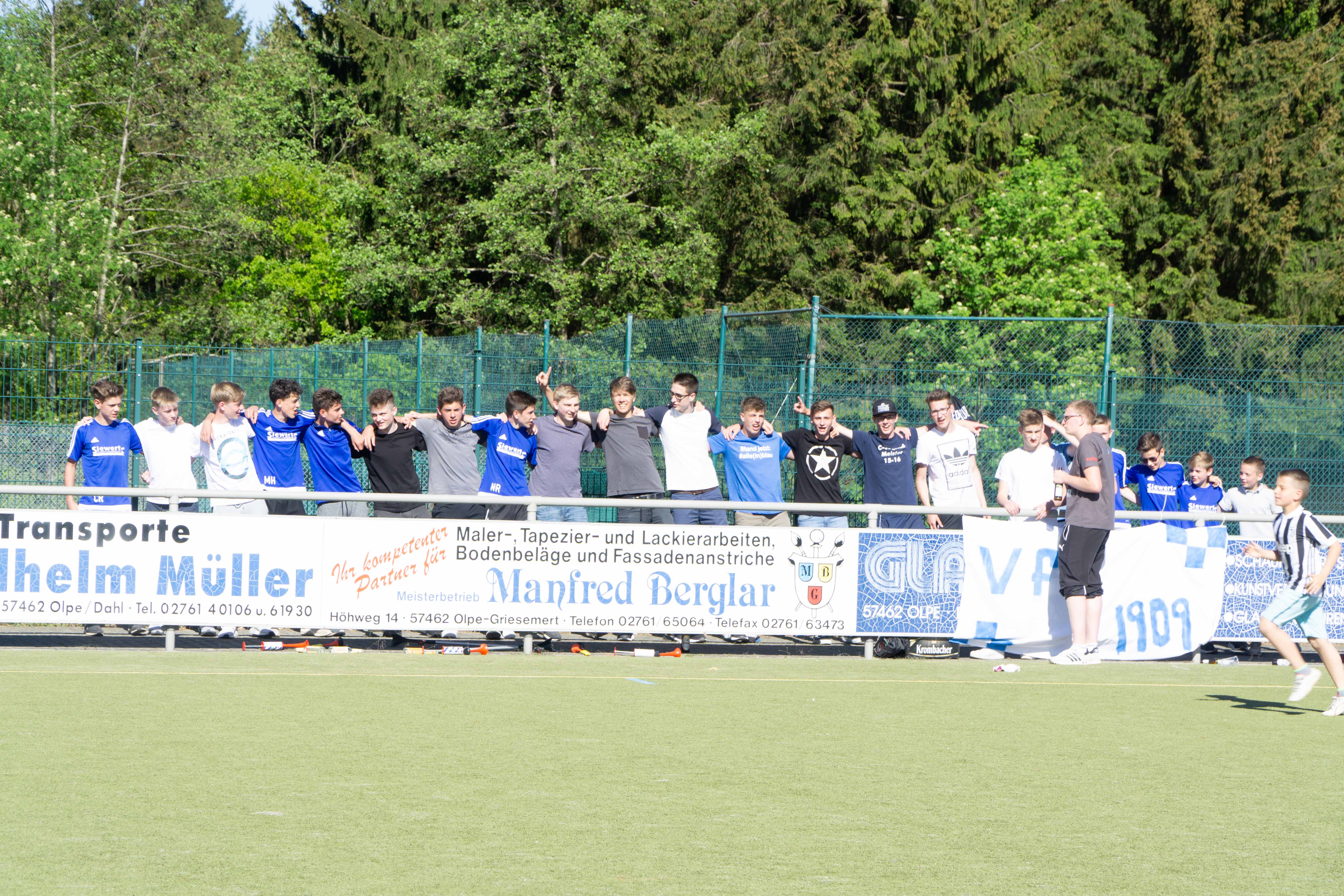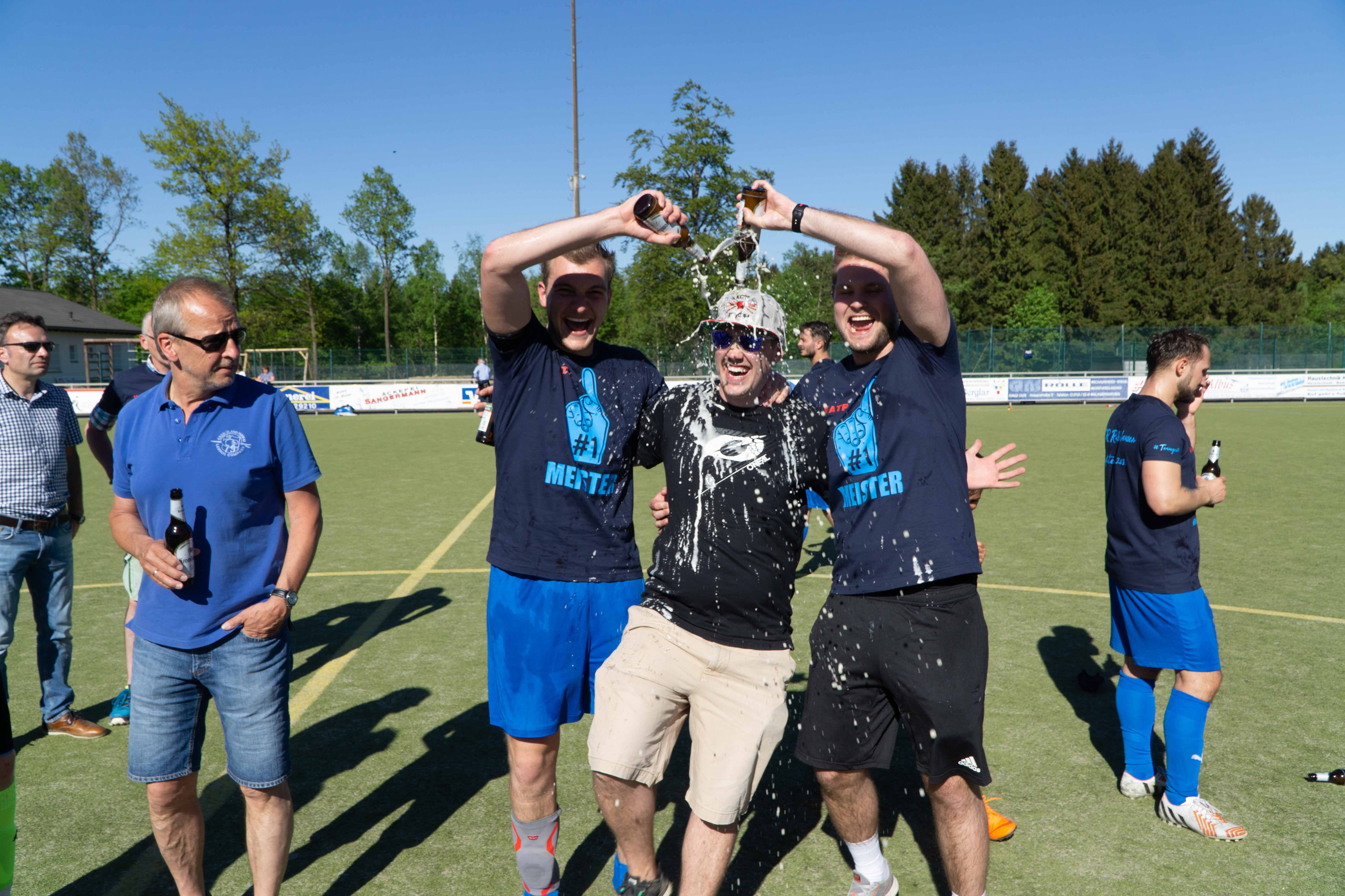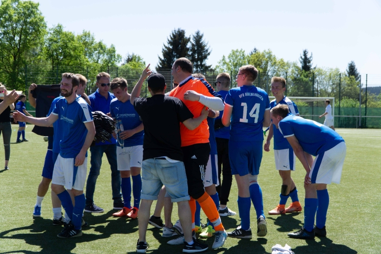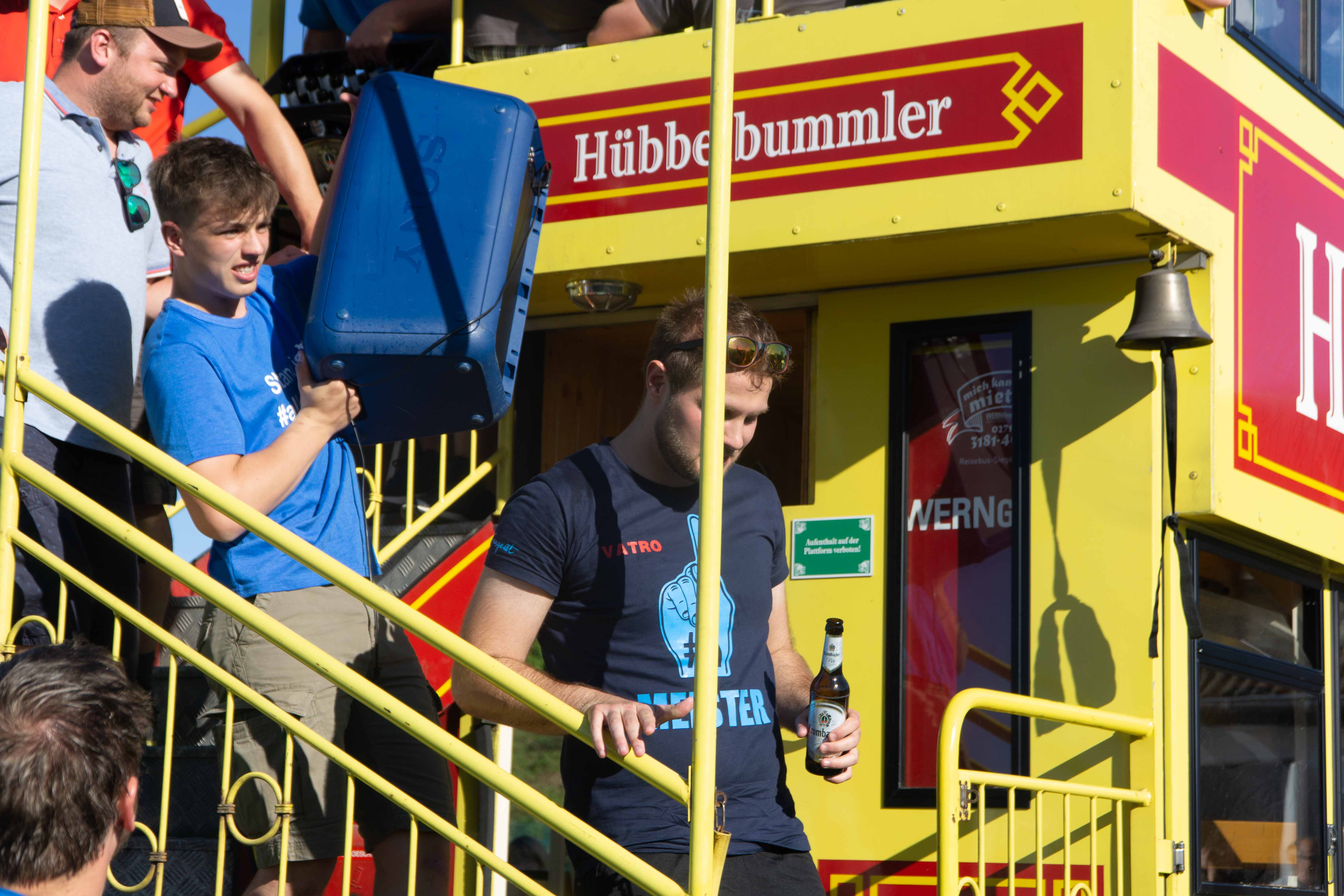 Anschließend wurde mit dem aus Siegen bekannten „Hübbelbummler“ eine rollende Party zurück zum Birkendrust veranstaltet. Dort wurde die Mannschaft schon von Fans, Bier, Musik und Würstchen erwartet und es begann eine Feier bis lang in die Nacht.