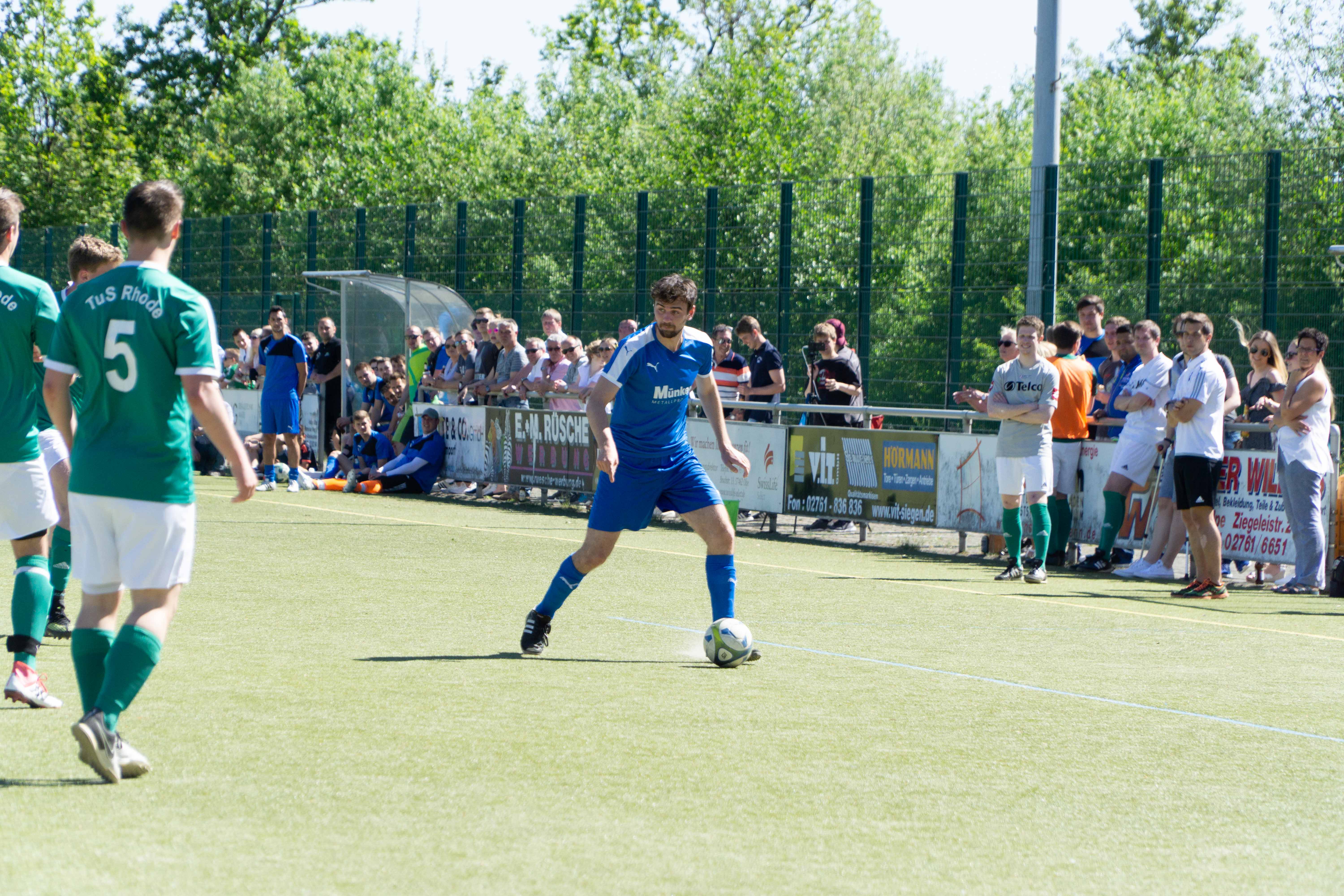 Mit einem Sieg konnte der VfR die Meisterschaft und damit auch den Aufstieg perfekt machen, und leitete das vor 150 Zuschauern auch mit dem frühen 1:0 durch Mentor Hajdari in die Wege (6.). Überraschenderweise gelang es der Meistermannschaft gegen den Tabellenletzten jedoch nicht, die Führung zügig auszubauen. Nach dem Seitenwechsel legte man aber dann durch Philipp Scholz (48.), Evgenij German (50.) und erneut Mentor Hajdari (59./Foulelfmeter) zügig nach. Das 4:0 und damit der Sieg der Gäste war später zu keinem Zeitpunkt gefährdet. Auch nicht, als Rhode durch zwei Tore von Michael Gusind bis auf 2:4 verkürzte (77./89.). Mentor Hajdari sorgte mit seinem dritten Tor an diesem Nachmittag dann noch für den Endstand von 5:2 (90.), der großen Jubel bei Spielern und Offiziellen sowie vielen mitgereisten Fans auslöste.