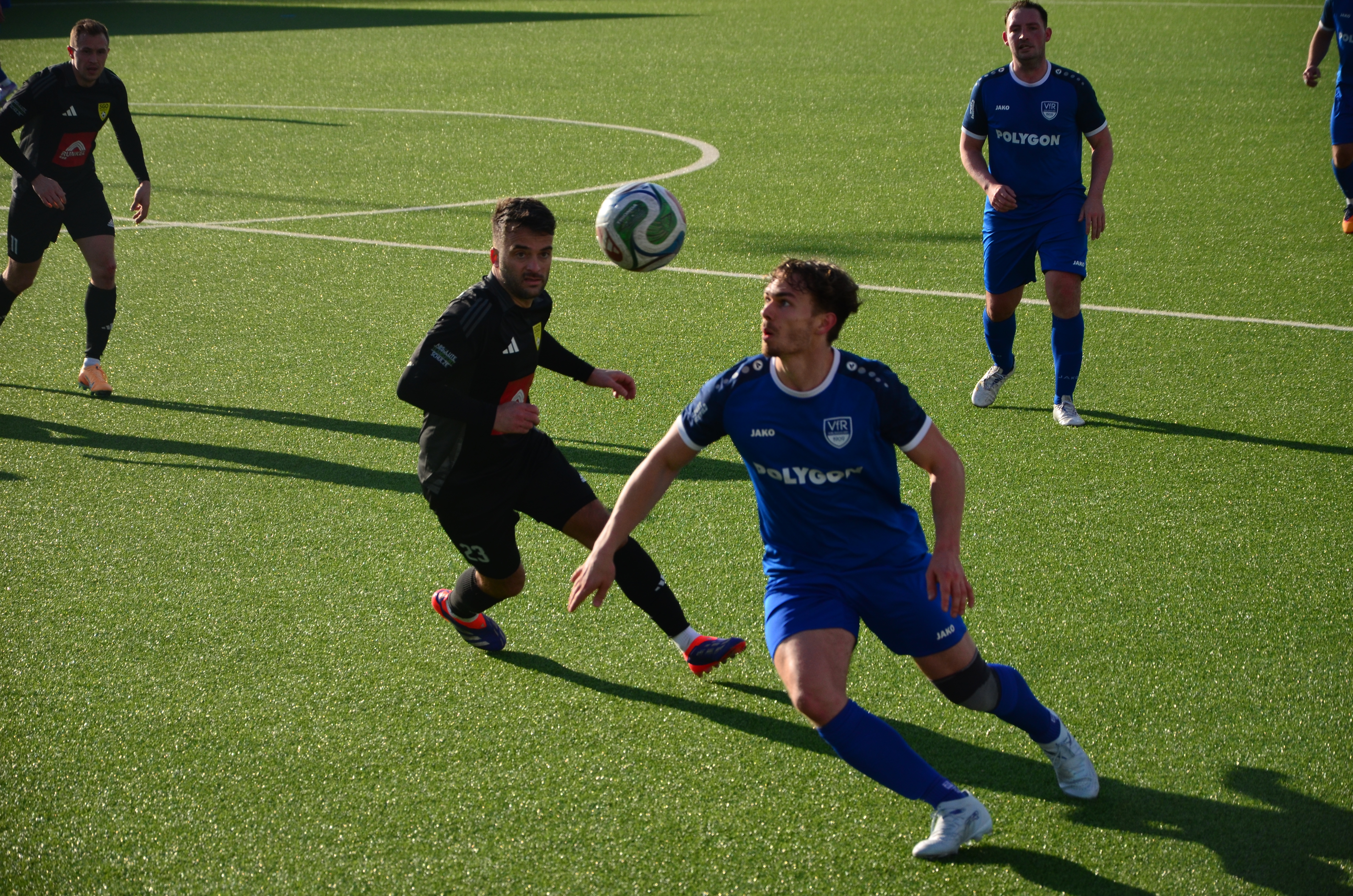 In der ersten Halbzeit entwickelte sich eine intensive Partie, in der das Spielgeschehen trotz weniger klarer Torchancen immer wieder hin und her wogte. Kurz vor der Pause schlug der VfR jedoch zu: Frederik Döppeler köpfte eine präzise Flanke von Nicolas Schieritz mit dem Halbzeitpfiff zur 1:0-Führung ein.